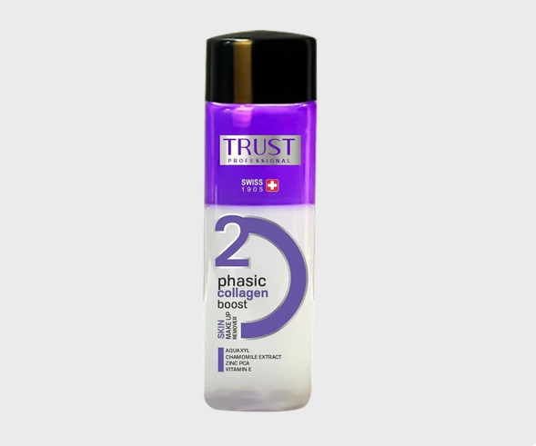 پاکسازی پوست از انواع آلودگیها و آثار بجایمانده از بکارگیری لوازم آرایشی، بخش مهمی از روتین پوستی ماست. پاککنندههای آرایشی باید تمام ذرات آسیبرسان به پوست را که در طول روز با آنها سروکار داریم از پوستمان به خوبی پاک کرده و خود آسیبی به پوست وارد نکنند. ولی ما میدانیم که همه پاککنندهها قادر به پاک کردن لوازم آرایشی ضدآب از صورت نیستند. یا برخی از پاککنندهها را نمیتوانیم برای پاکسازی چشم یا لبمان استفاده کنیم. اینجاست که پای پاککنندههای دوفازی به داستان پاکسازی پوست باز میشود.محلول پاککننده آرایش دوفازی تراست، تمام آلودگیها و مواد آرایشی معمولی و ضدآب را از پوستمان پاک کرده و اثری از آنها به جای نمیگذارد. این محصول از پیری پوست جلوگیری کرده، باعث استحکام پوست و جلوگیری از باز شدن منافذ پوست می شود.محلول دوفازی ضمن پاککنندگی پوست ، پوست را آبرسانی کرده و مانع از تبخیر آب پوستی میشود.همچنین از التهابات پوستی جلوگیری کرده، آن را نرم و باطراوت میکند و مانع از آسیب رادیکالهای آزاد به پوست میشود.