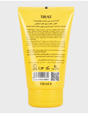 عصاره میوههای استوایی بکار رفته در کرم میوههای استوایی تراست سرشار از فلاونوئیدها، ویتامین C، آهن و آنتی اکسیدانهای بسیار قوی بوده که به رادیکالهای آزادی که به پوست آسیب میزنند، حمله کرده و در حین آبرسانی به پوست، آنها را نیز از بین میبرد. این کرم ظاهر و شرایط مناسبی را برای پوست فراهم میآورد و از تبخیر آب پوستی جلوگیری کرده، موجب افزایش رطوبت پوست و نهایتا نرم کنندگی آن پس از مصرف میشود.